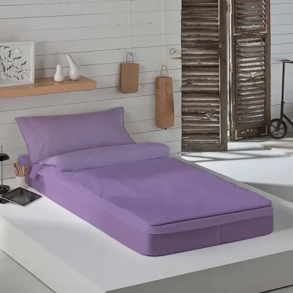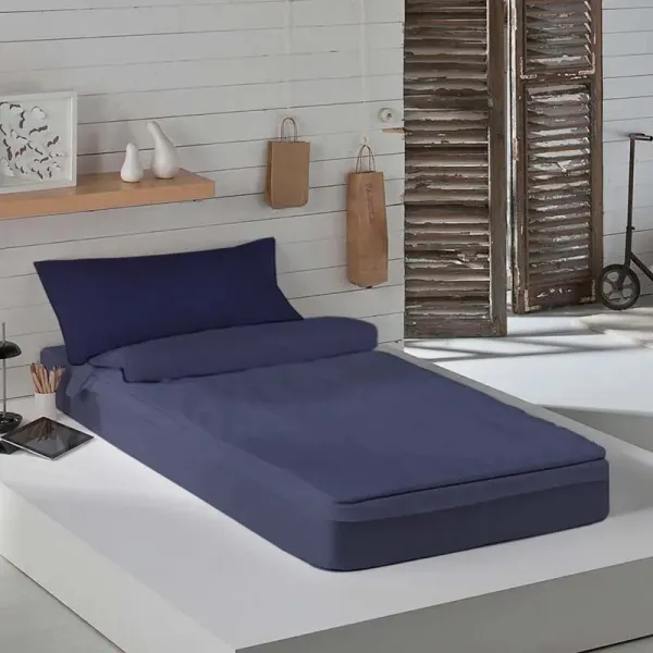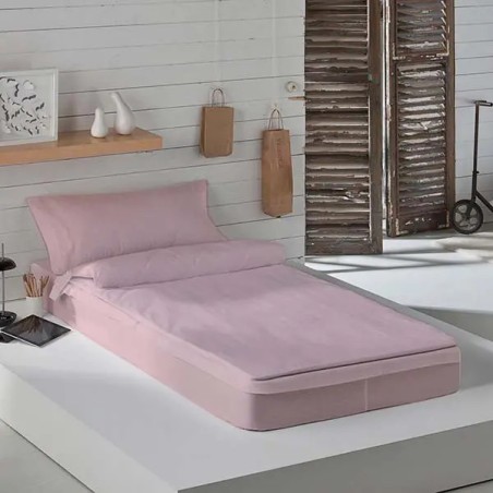 El saco nórdico ajustable con relleno de 250 gr está disponible en varios colores. La sábana bajera es ajustable garantizando una sujección óptima al colchón y gracias a la cremallera puedes unirlo a la funda nórdica. Incluye funda de almohada de una pieza a juego y relleno nórdico de 250 gr.