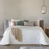 Colcha Bouti Tulum de Antilo en tejido jacquard con diseño geométrico de rombos en color blanco. Con gramaje de 200 g, es ligera y elegante, perfecta para entretiempo. Incluye 2 fundas de cojín 50x70 cm a juego.