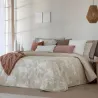 Colcha Bouti Bel de Antilo en terciopelo liso de tonos gris y beige. Con gramaje de 200 g, es elegante y ligera, perfecta para entretiempo. Incluye 2 fundas de cojín de 50x70 cm a juego.