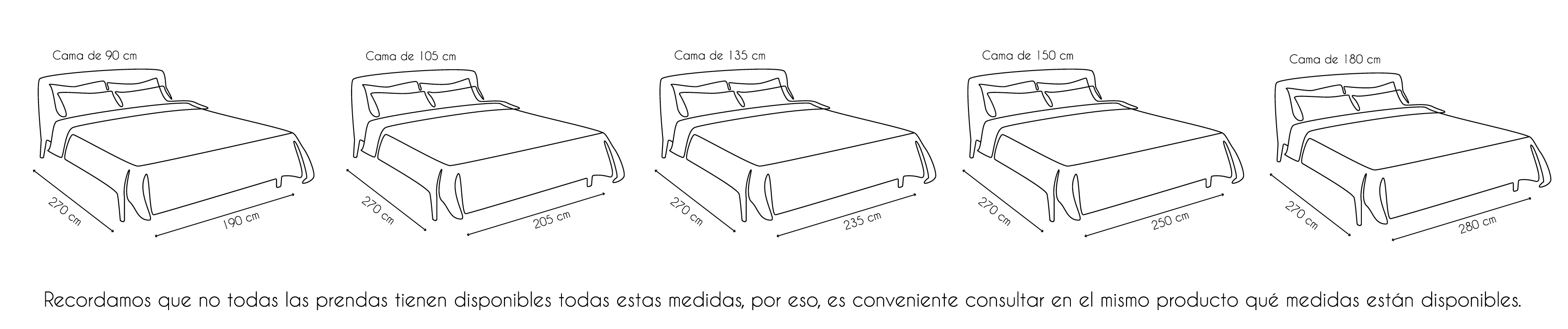ATENCIÓN: Recomendamos medir el ancho y largo del colchón para comprar las medidas exactas. Es posible que necesite una medida más grande según las medidas de su cama o cuánto quiera de caída de la prenda. Puedes comprobar las medidas en la tabla de medidas que se encuentra más abajo.