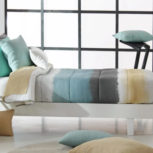 Edredón ajustable Tiger Reig Marti con gomas ajustables para las camas individuales. Es ideal para que no se mueva el edredón y para que no se destape la persona que está durmiendo. Este edredón solamente está disponible para cama individual y cuenta con un diseño en franjas de colores degradados ideal para combinar con resto de decoración de tu dormitorio.