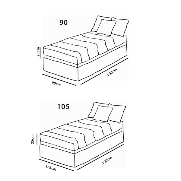 - Cama 90 cm: Edredón de 90x190 cm con grosor de 25 cm