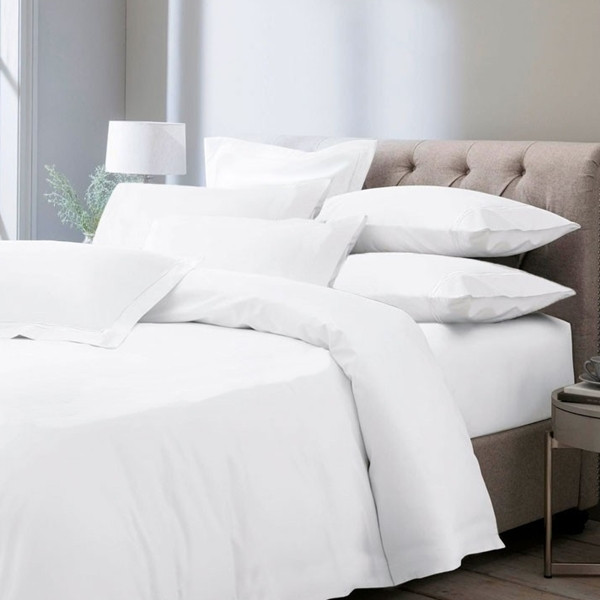 Excelente funda nórdica confeccionada en tejido de satén de color blanco de gran calidad y con una suavidad excelente. El set de ropa de cama incluye: saco nórdico y funda de almohada (partida para camas desde 150 cm de ancho), todo a juego con un diseño liso en el mismo color.