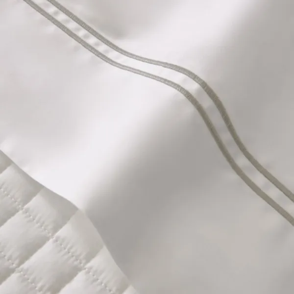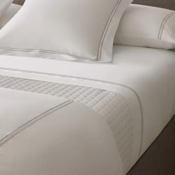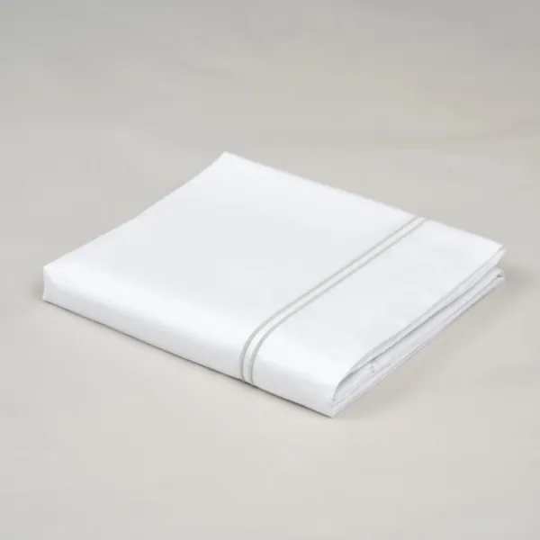 Sábana Encimera Chamonix Bassols confeccionada en algodón egipcio peinado y mercerizado. Su tejido satén de 300 hilos ofrece un tacto suave y un aspecto impecable, mientras que el doble bordón artesanal añade un detalle elegante y simétrico.