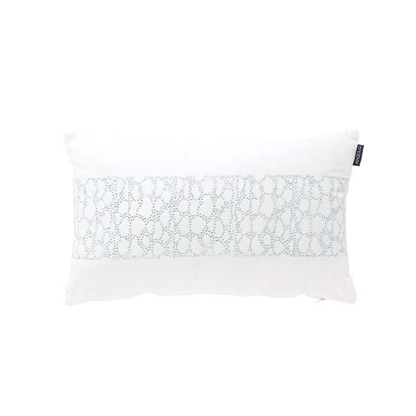 Funda cojín Luxury 19 de la marca Antilo disponible en color blanco, perla, malva y azul con tacto extrasuave y con diseño moderno que formado a partir de perlas brillantes. Es una funda perfecta para darle un toque único a nuestro dormitorio o salón.