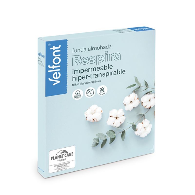 La Funda Almohada Respira Velfont impermeable e hiper-transpirable está confeccionada en algodón orgánico peinado de alta calidad, que le aporta un tacto suave y natural.