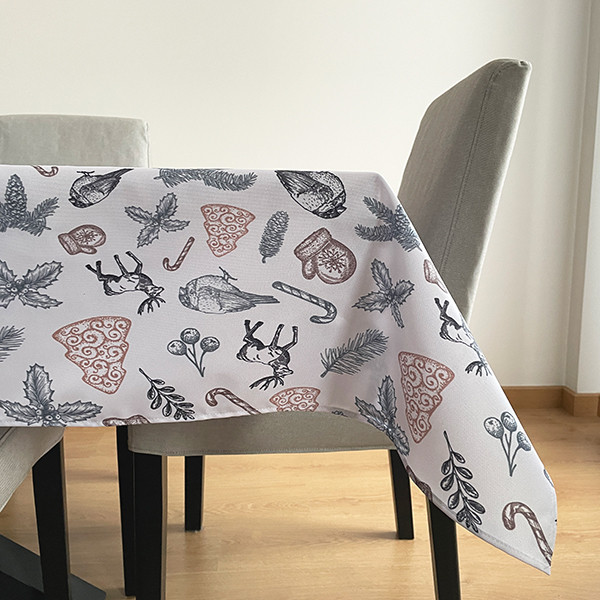 Es un mantel con motivos navideños muy bonitos para vestir tu mesa.