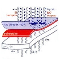 Este protector de colchón está fabricado en rizo 100% algodón con tratamiento aloe vera muy absorbente y beneficioso para la piel.