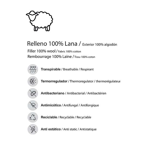- Relleno interno: lana 100%