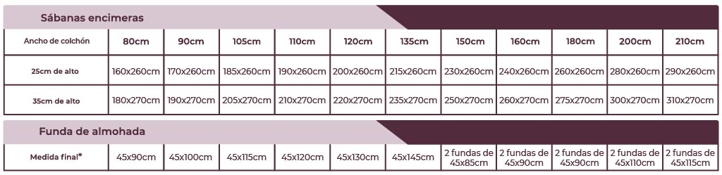 *A la medida final se suman siempre 10cm (aprox.) de ribete en cada funda.