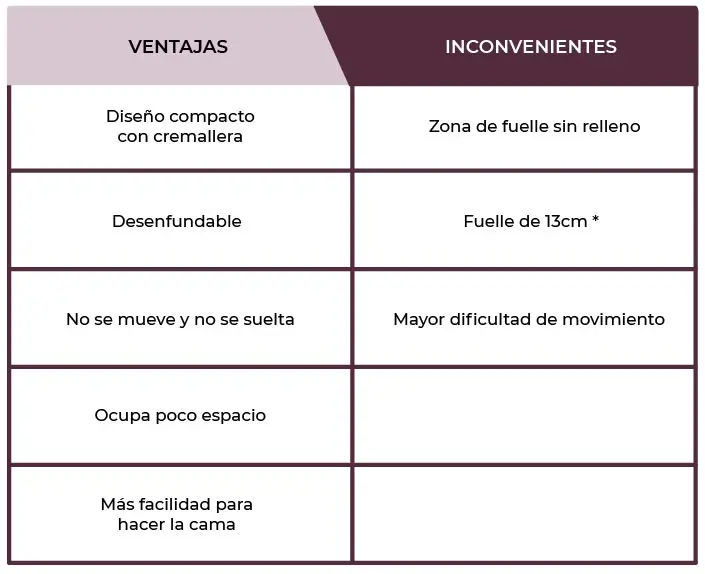 Consejo: según necesidades, en camas de 120-140 cm, aconsejamos utilizar fundas nórdicas, pues el fuelle no incluye relleno.